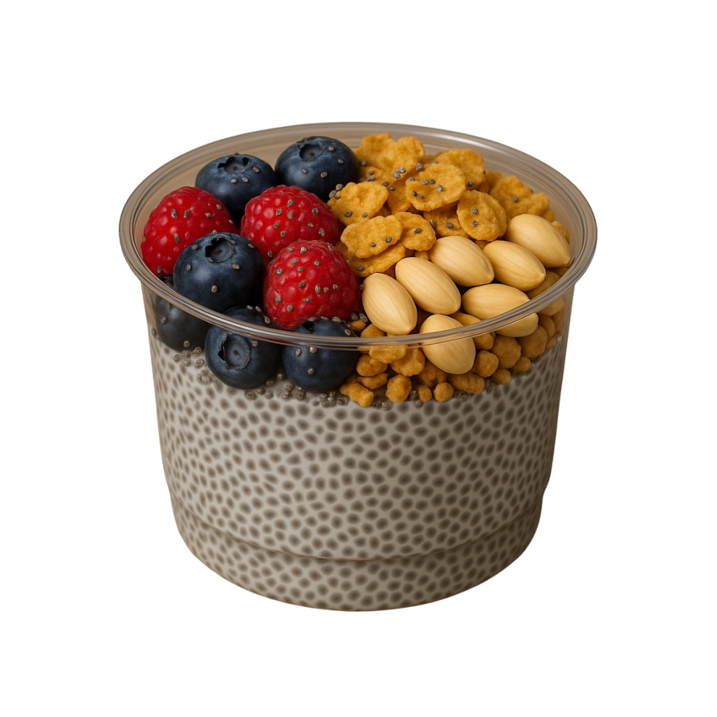 – La Base, il CHIA PUDDING sviluppato internamente secondo la Nostra Ricetta Personale e Riservata, dunque, non replicabile, che rappresenta il 50% della Composizione;